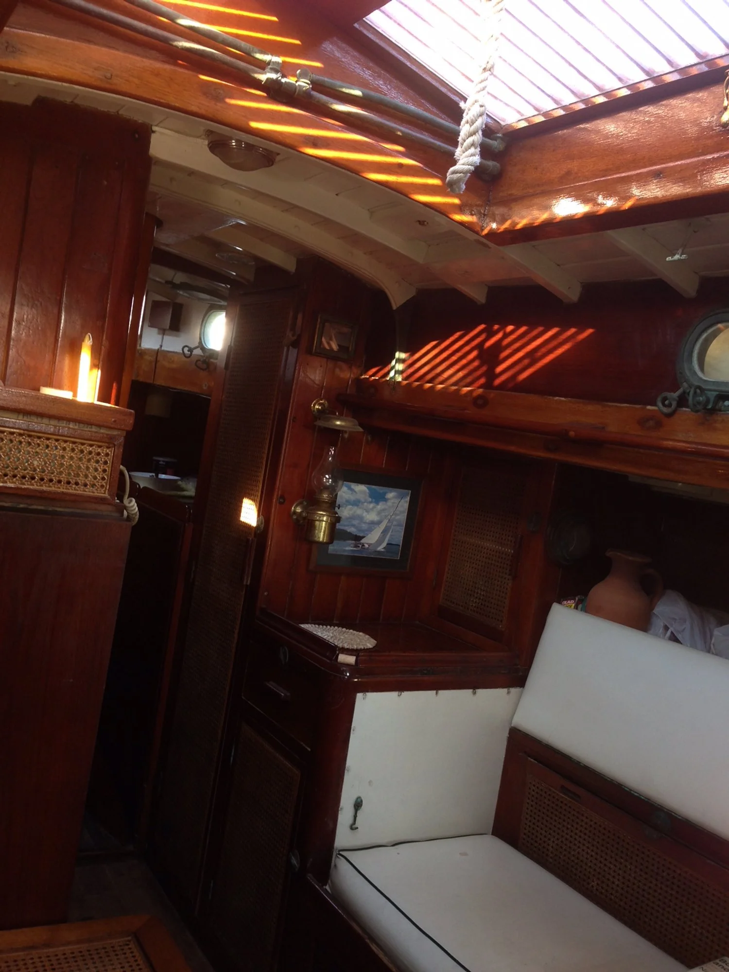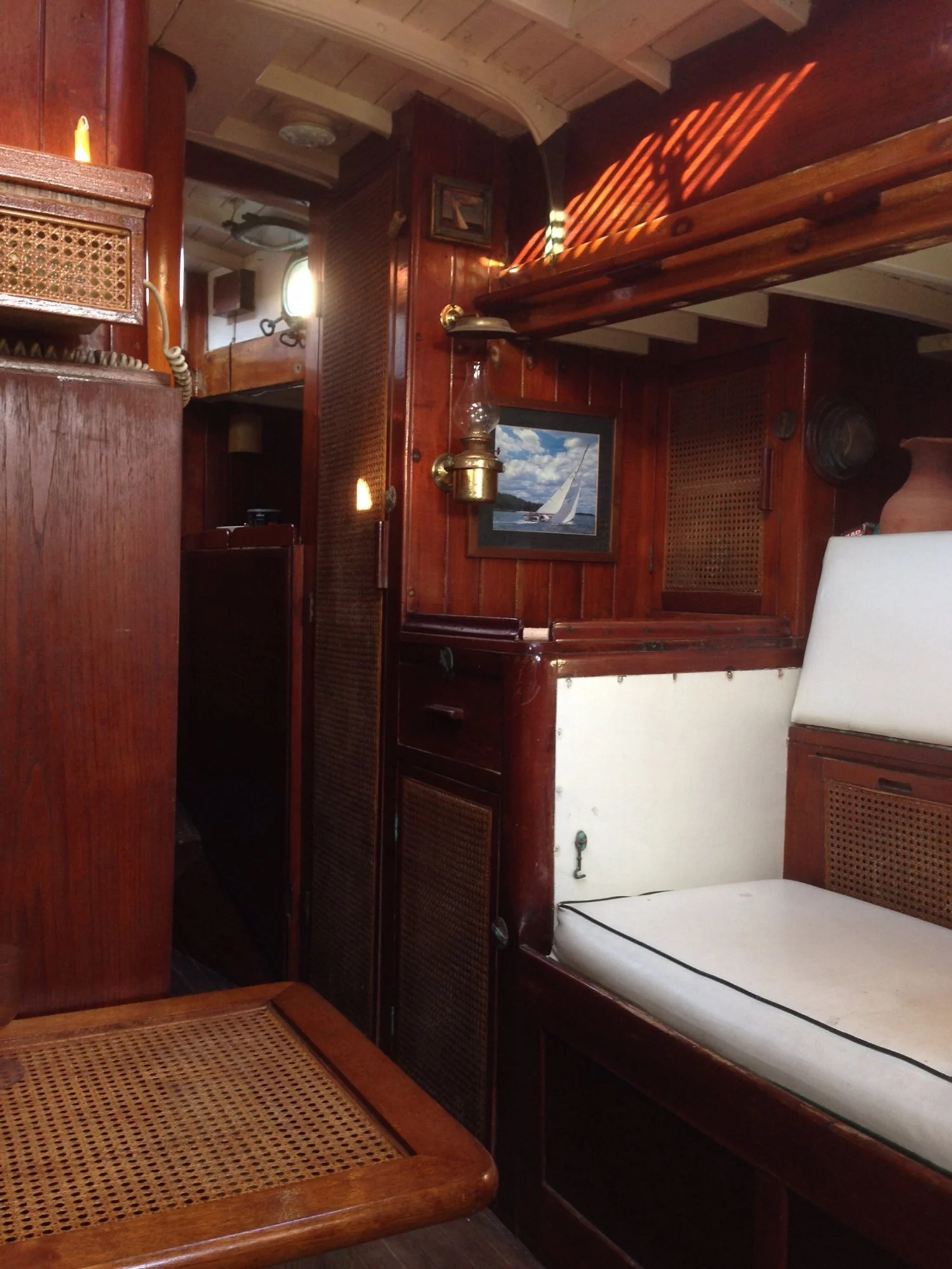 She is very much like the S&S NY32 design in all external dimensions, except built entirely of teak, and the interior is more elegant. She weighs 16 tons.